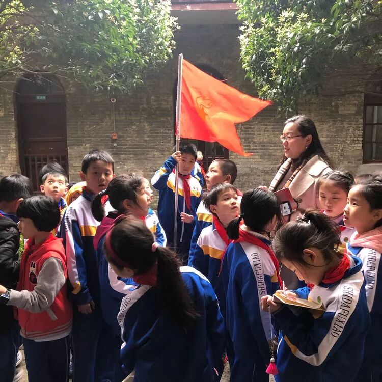 在此合唱少先队队歌,并朗诵《清明 》缅怀先烈。